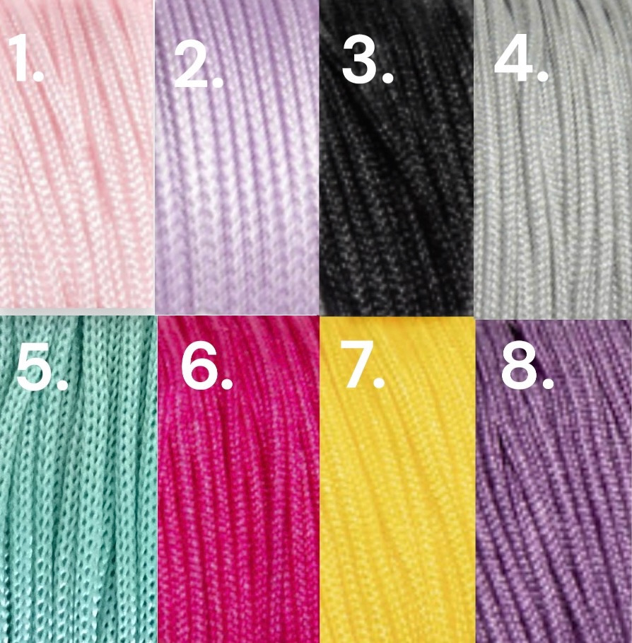 Pulsera ajustable personalizada con nombre o fecha para niñas a partir de 3 años. La pulsera está realizada en hilo de Nylon con plaquita de plata, donde podrá grabar el nombre que desee y elegir color de cordón.